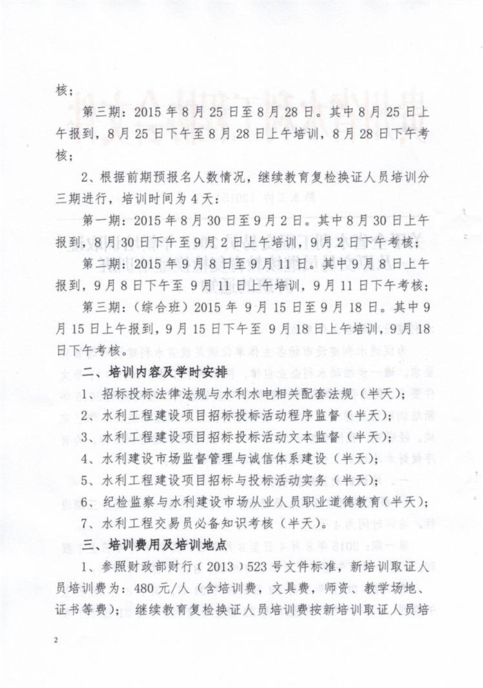 關(guān)于全省水利工程交易員2015年新培訓(xùn)取證及原交易員繼續(xù)教育復(fù)檢換證培訓(xùn)班開(kāi)班的通知