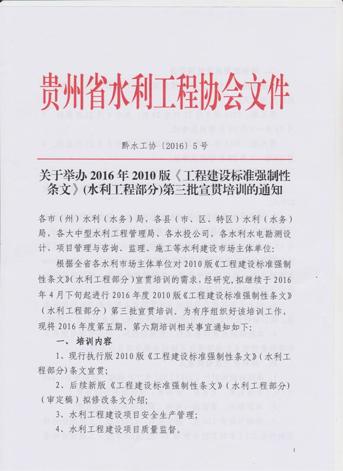 貴州省水利工程協(xié)會關(guān)于2016版《水利