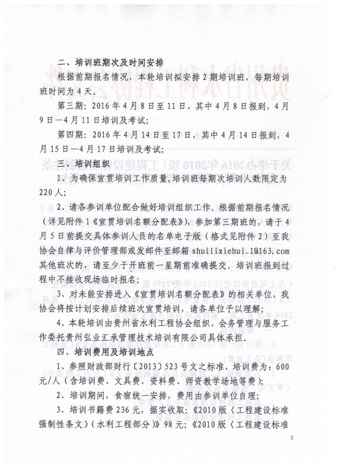 關(guān)于舉辦2016年2010版《工程建設(shè)標(biāo)準(zhǔn)強(qiáng)制性條文》(水利工程部分)第二批宣貫培訓(xùn)的通知