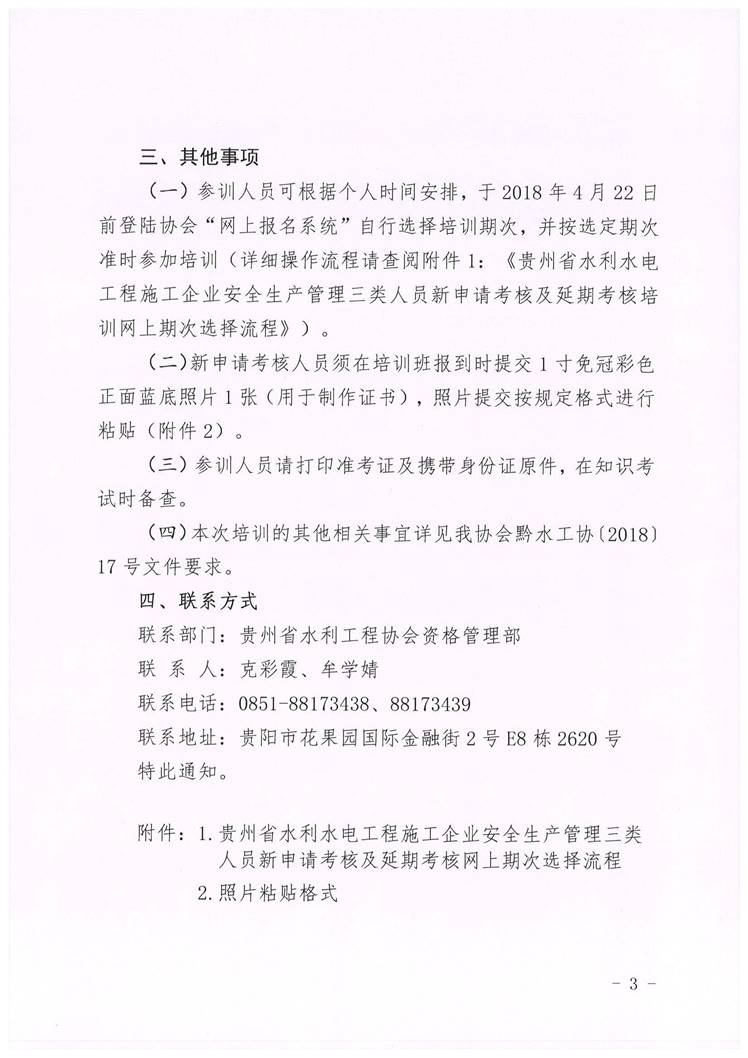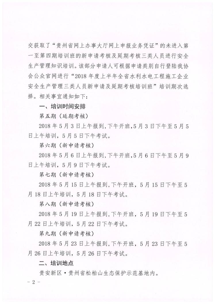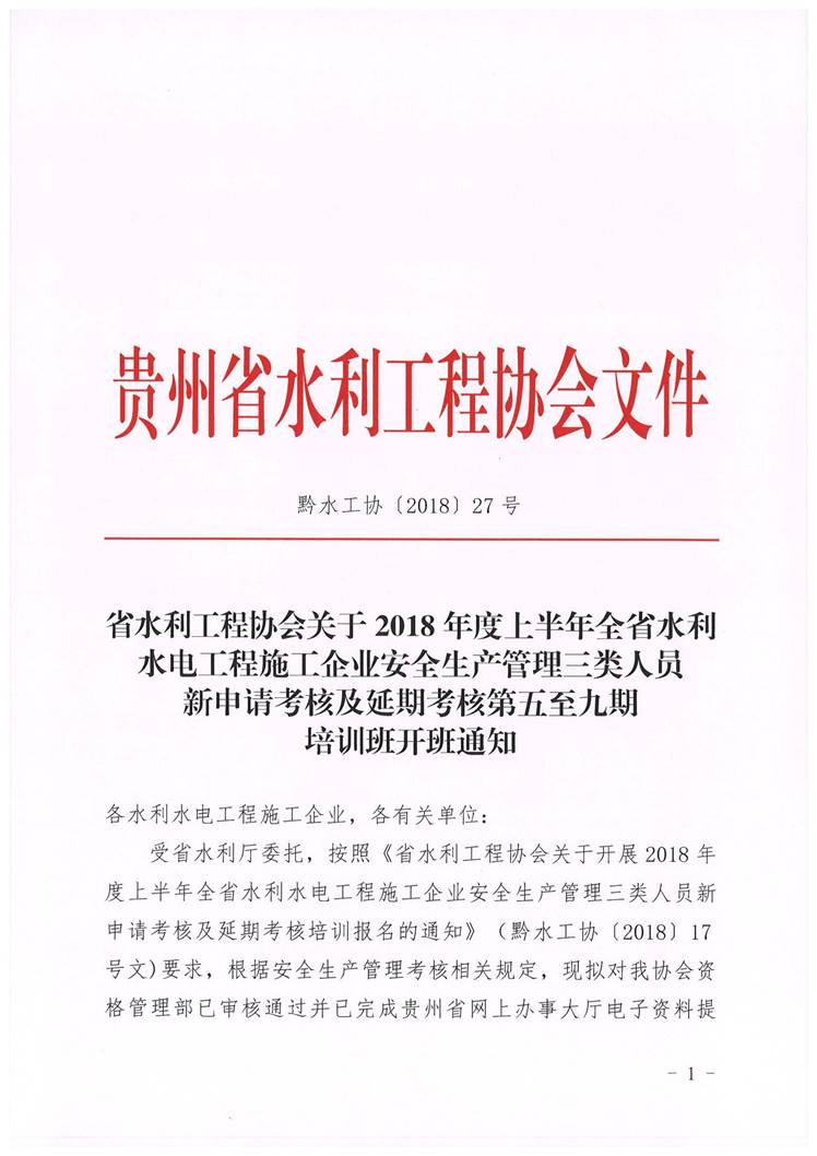 貴州省水利工程協(xié)會關(guān)于2018年度上半年全省水利水電工程施工企業(yè)安全生產(chǎn)管理三類人員 新申請考核及延期考核第五至九期 培訓(xùn)班開班通知