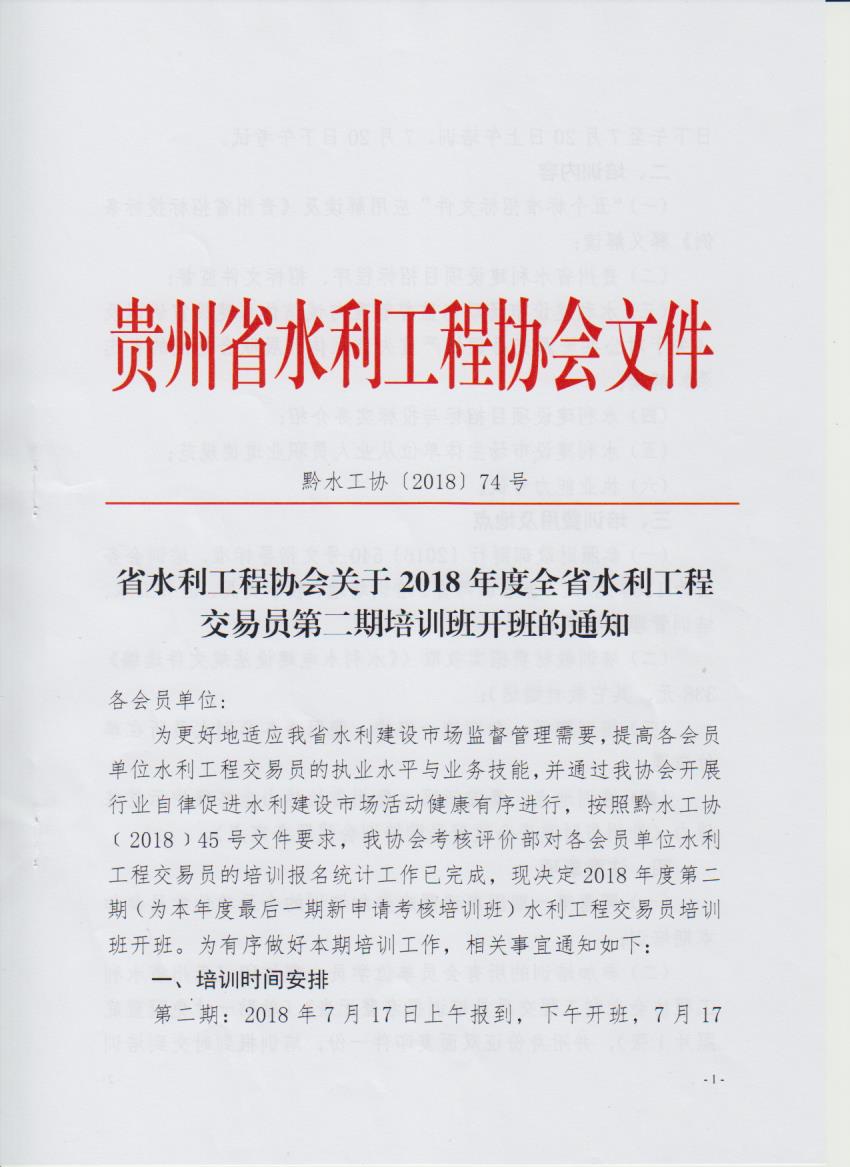 省水利工程協(xié)會關(guān)于2018年度全省水利工程交易員第二期培訓(xùn)開班的通知