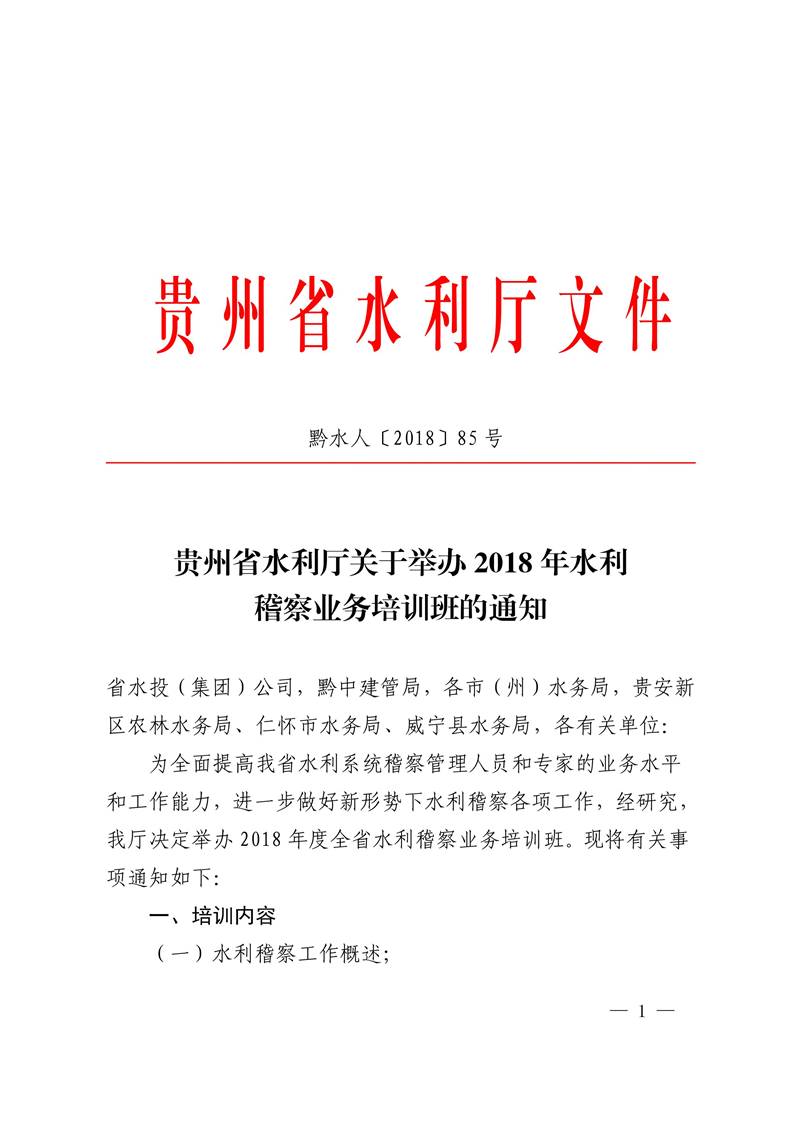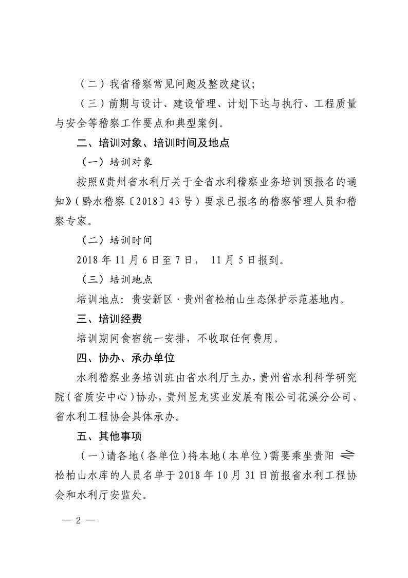 貴州省水利廳關(guān)于舉辦2018年水利稽察業(yè)務(wù)培訓(xùn)班的通知