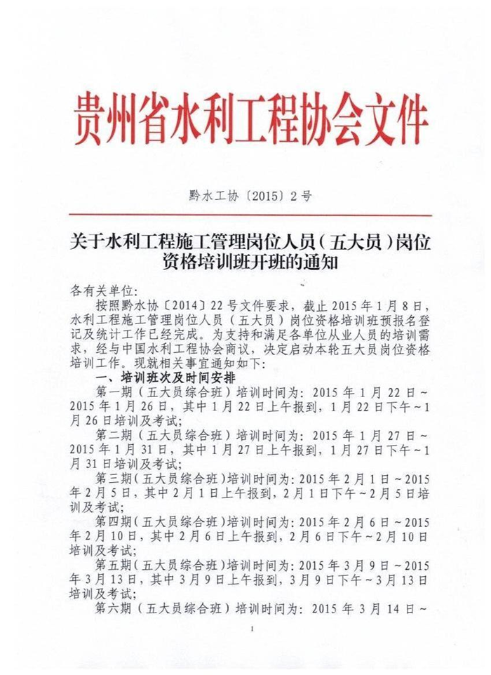 關(guān)于水利工程施工管理崗位人員(五大員)崗位資格培訓(xùn)班開班的通知