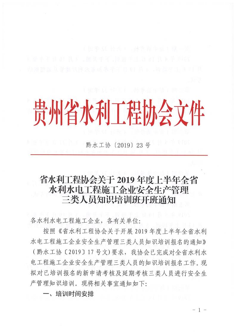 省水利工程協(xié)會關(guān)于2019年度上半年全省水利水電工程施工企業(yè)安全生產(chǎn)管理三類人員知識培訓(xùn)班開班通知