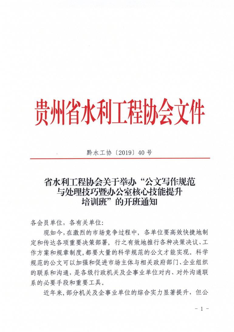 省水利工程協(xié)會(huì)關(guān)于舉辦“公文寫(xiě)作規(guī)范與處理技巧暨辦公室核心技能提升培訓(xùn)班”的開(kāi)班通知
