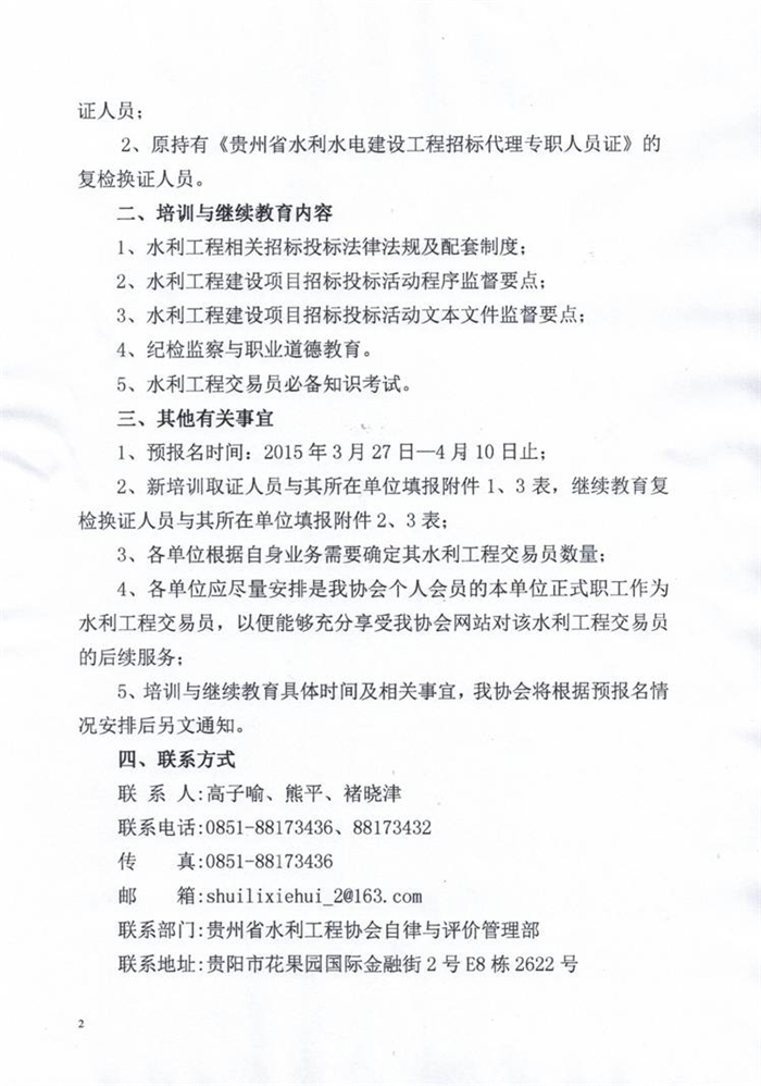 關(guān)于全省水利工程交易員2015年新培訓(xùn)取證及原交易員繼續(xù)教育復(fù)檢換證預(yù)報名的通知