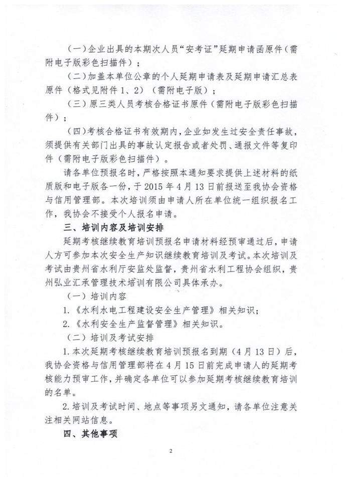 關于開展2015年度全省水利水電工程施工企業(yè)安全生產(chǎn)管理三類人員“安考證”有效期上半年期滿人員延期教育培訓班預報名的通知