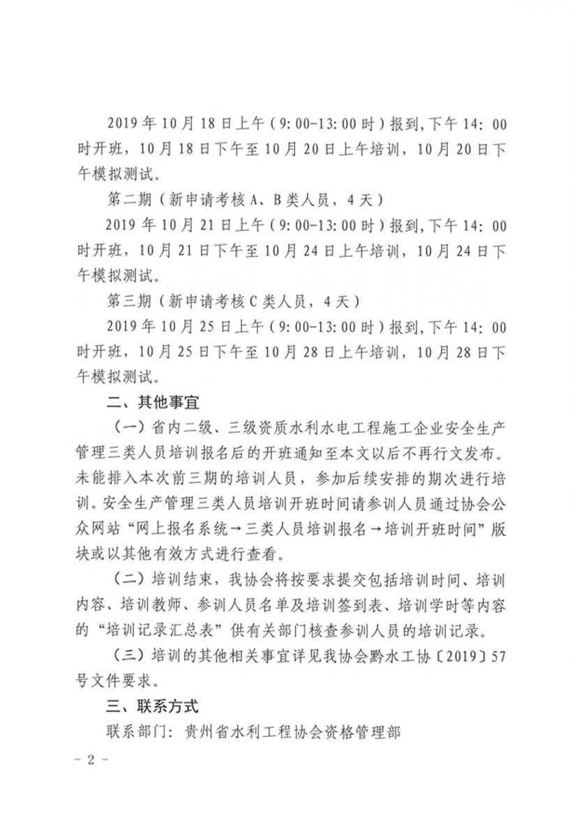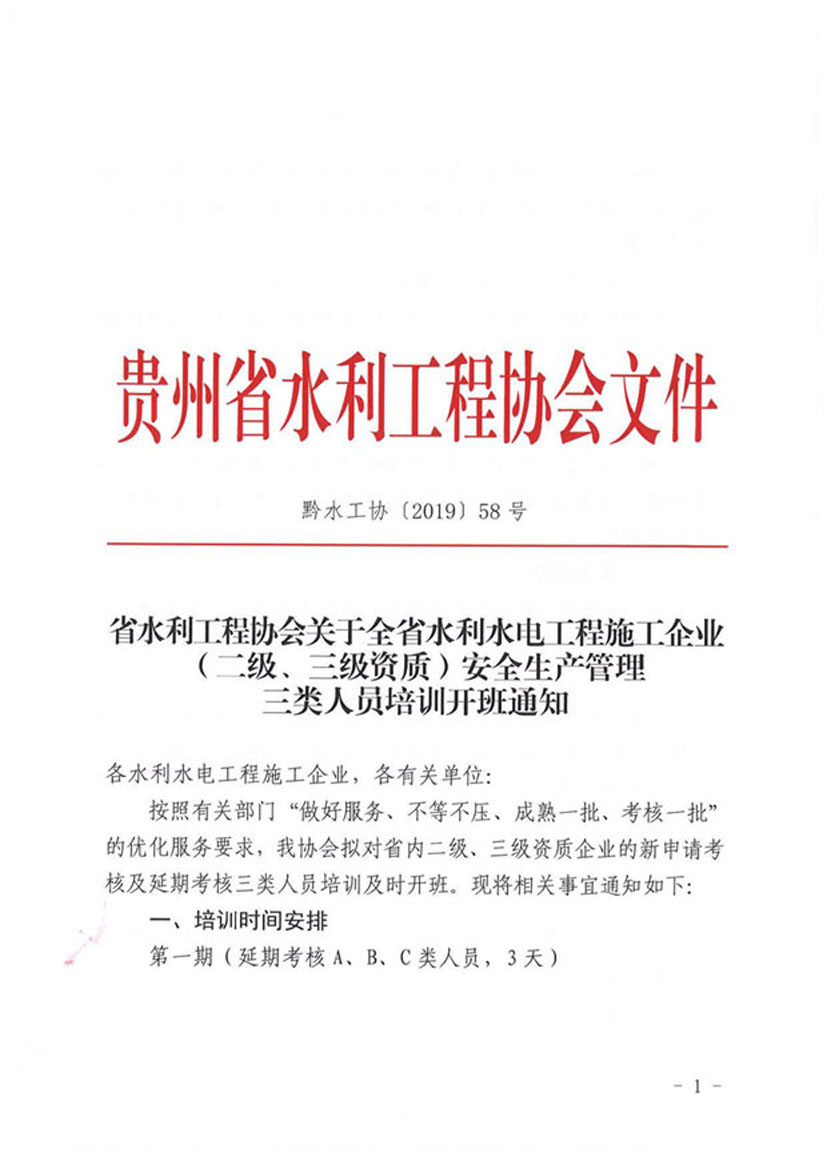 省水利工程協(xié)會關(guān)于全省水利水電工程施工企業(yè)(二級、三級資質(zhì))安全生產(chǎn)管理三類人員培訓(xùn)開班通知