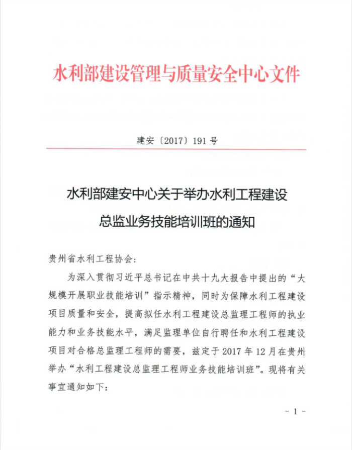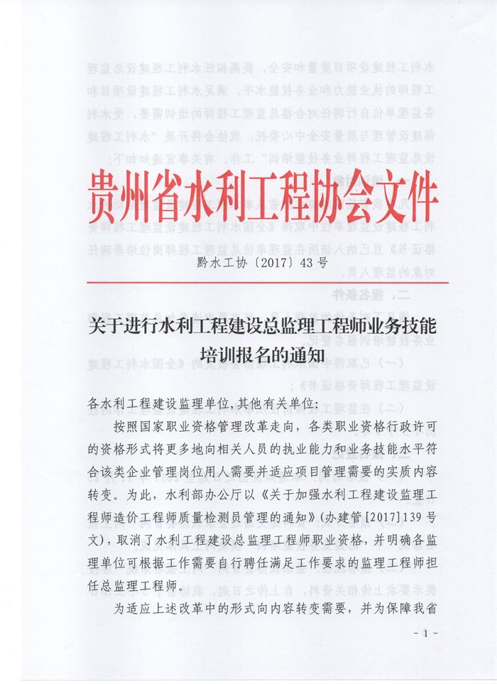 關(guān)于進(jìn)行水利工程建設(shè)總監(jiān)理工程師業(yè)務(wù)技能培訓(xùn)報(bào)名的通知