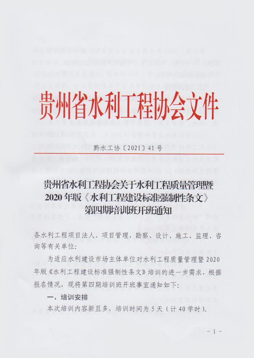 關(guān)于水利工程質(zhì)量管理暨2020年版《水利工程建設(shè)標(biāo)準(zhǔn)強(qiáng)制性條文》第四期培訓(xùn)班開班通知