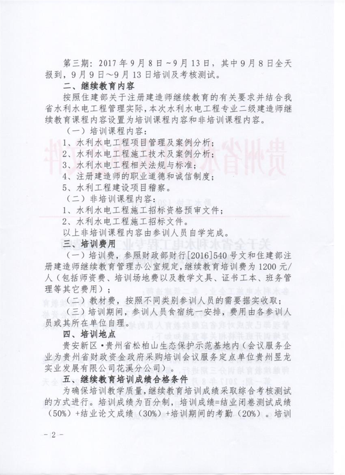 關(guān)于全省水利水電工程專(zhuān)業(yè)二級(jí)建造師繼續(xù)教育培訓(xùn)開(kāi)班的通知