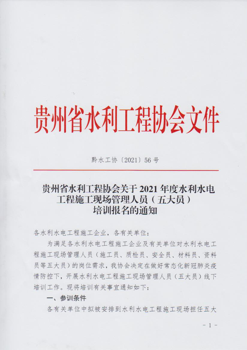 關(guān)于2021年度水利水電工程施工現(xiàn)場(chǎng)管理人員(五大員)培訓(xùn)報(bào)名的通知