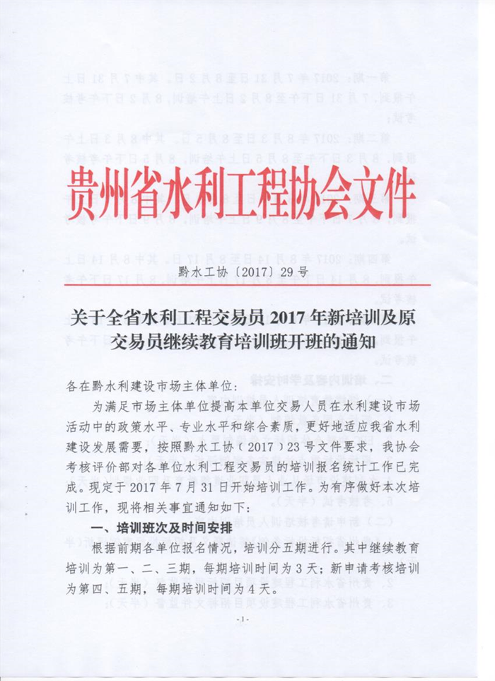 關(guān)于全省水利工程交易員2017年度新培訓(xùn)及原交易員繼續(xù)教育培訓(xùn)班開班的通知