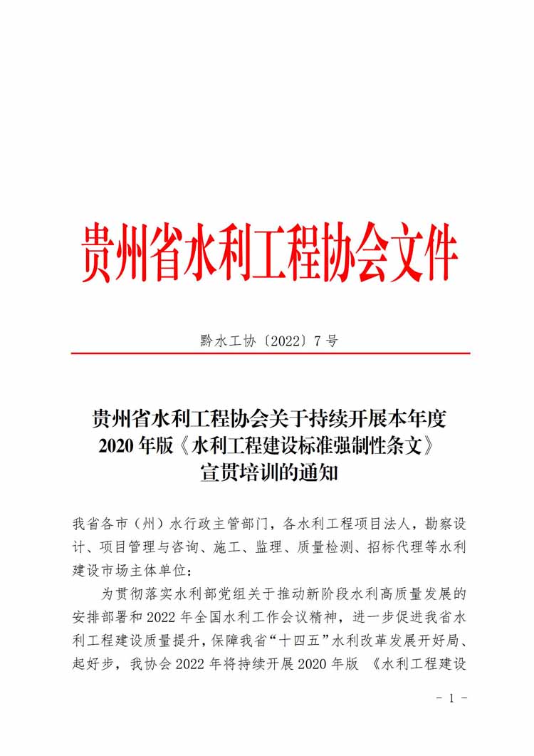 關(guān)于持續(xù)開展本年度2020年版《水利工程建設(shè)標(biāo)準(zhǔn)強(qiáng)制性條文》宣貫培訓(xùn)的通知