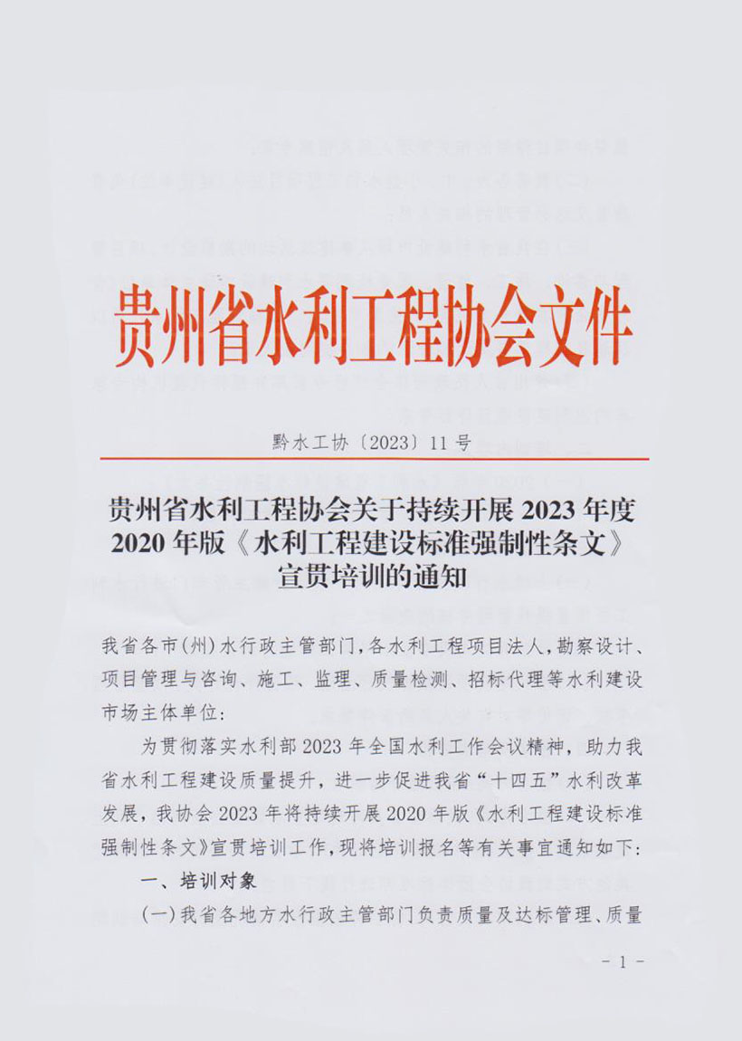 關(guān)于持續(xù)開(kāi)展2023年度2020年版《水利工程建設(shè)標(biāo)準(zhǔn)強(qiáng)制性條文》宣貫培訓(xùn)的通知