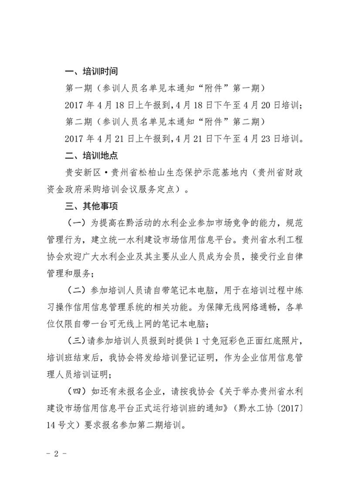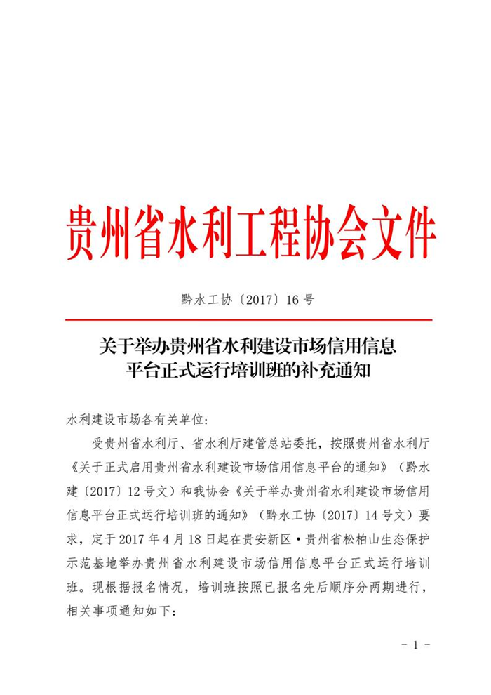 關(guān)于舉辦貴州省水利建設(shè)市場信用信息平臺(tái)正式運(yùn)行培訓(xùn)班的補(bǔ)充通知