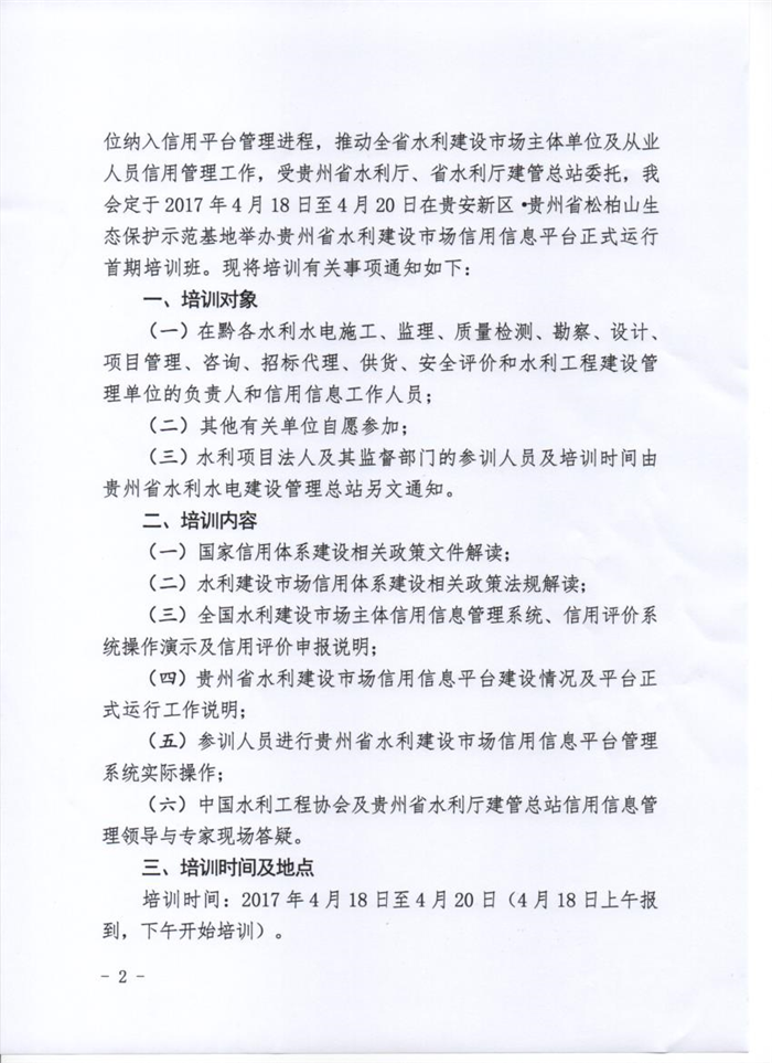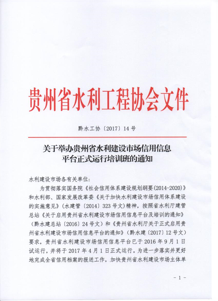 關(guān)于舉辦貴州省水利建設(shè)市場信用信息平臺正式運(yùn)行培訓(xùn)班的通知