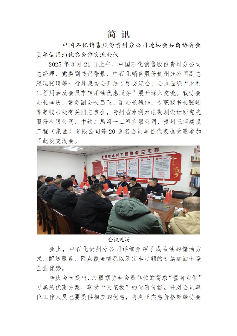 簡訊:中國石化銷售股份貴州分公司赴協(xié)會共商協(xié)會會員單位用油優(yōu)惠合作交流會議