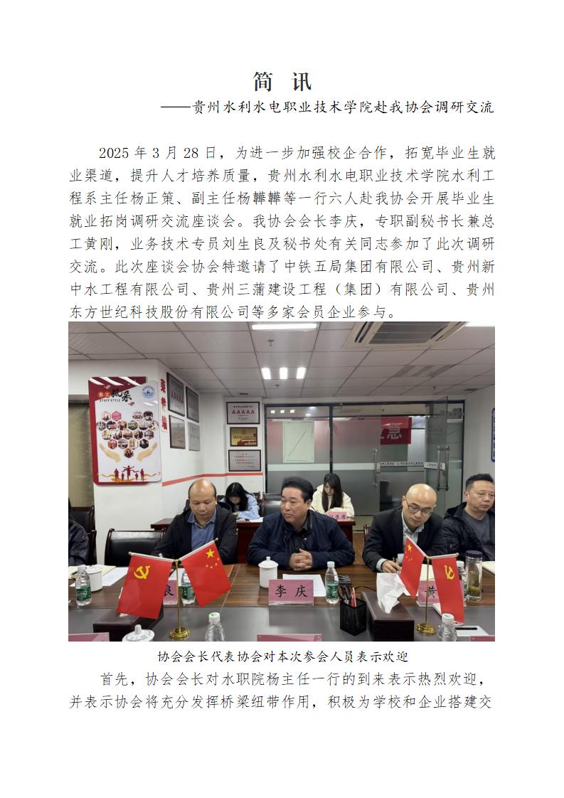 簡訊:貴州水利水電職業(yè)技術(shù)學(xué)院赴我協(xié)會調(diào)研交流