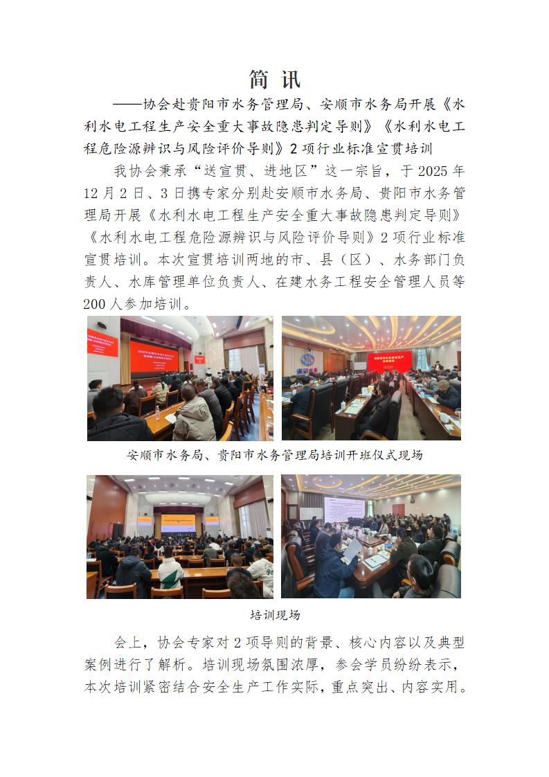 簡訊:協(xié)會赴貴陽市水務(wù)管理局、安順市水務(wù)局開展《水利水電工程生產(chǎn)安全重大事故隱患判定導(dǎo)則》《水利水電工程危險源辨識與風險評價導(dǎo)則》2項行業(yè)標準宣貫培訓(xùn)