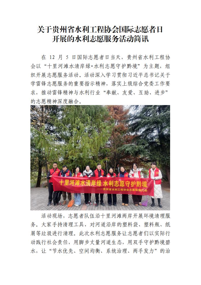 簡(jiǎn)訊:關(guān)于貴州省水利工程協(xié)會(huì)國(guó)際志愿者日開(kāi)展的水利志愿服務(wù)活動(dòng)