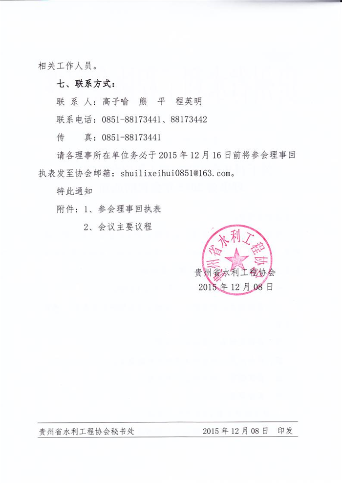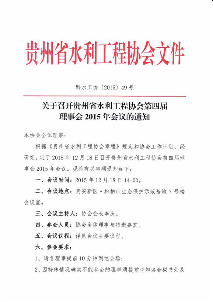 關(guān)于召開貴州省水利工程協(xié)會第四屆理事會2015年會議的通知