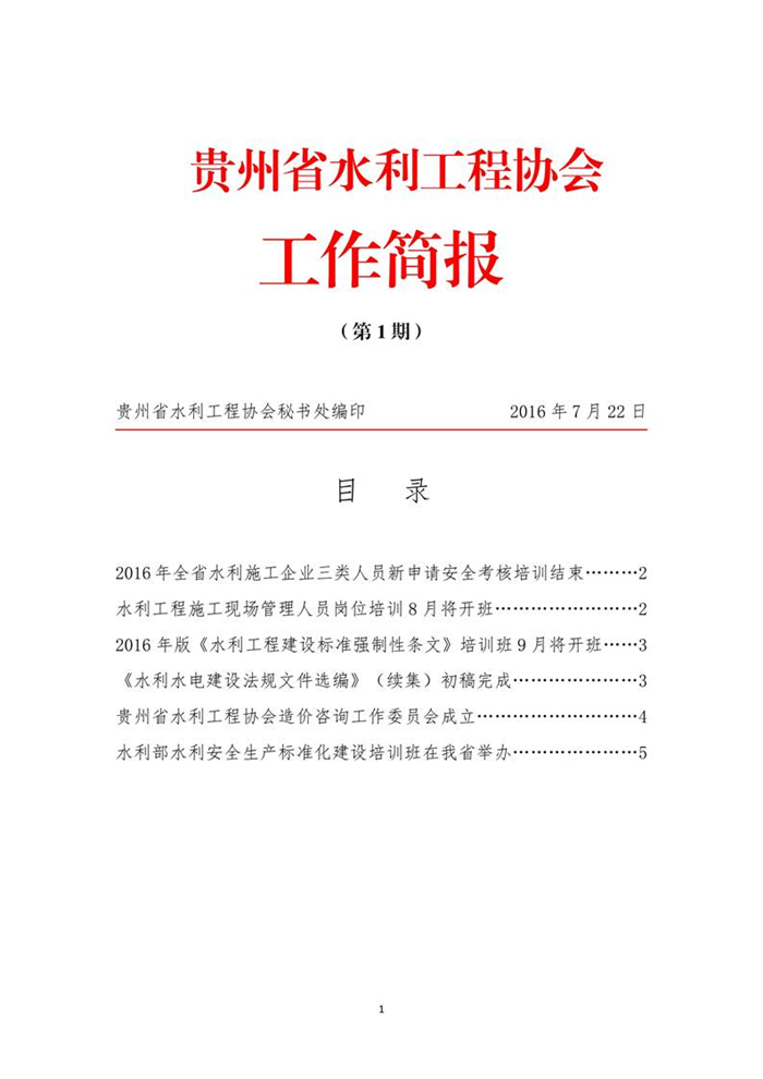 貴州省水利工程協(xié)會(huì)工作簡(jiǎn)報(bào)(第1期)