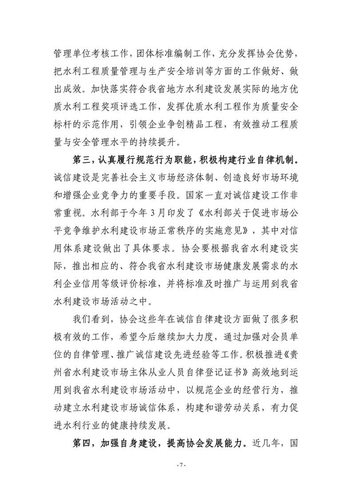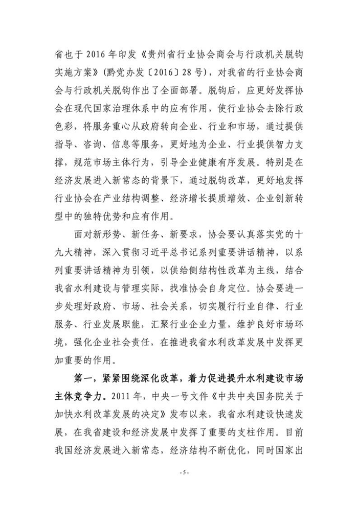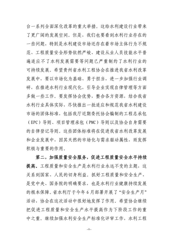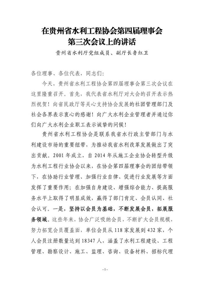 貴州省水利廳黨組成員副廳長魯紅衛(wèi)在貴州省水利工程協(xié)會(huì)第四屆理事會(huì)第三次會(huì)議上的講話