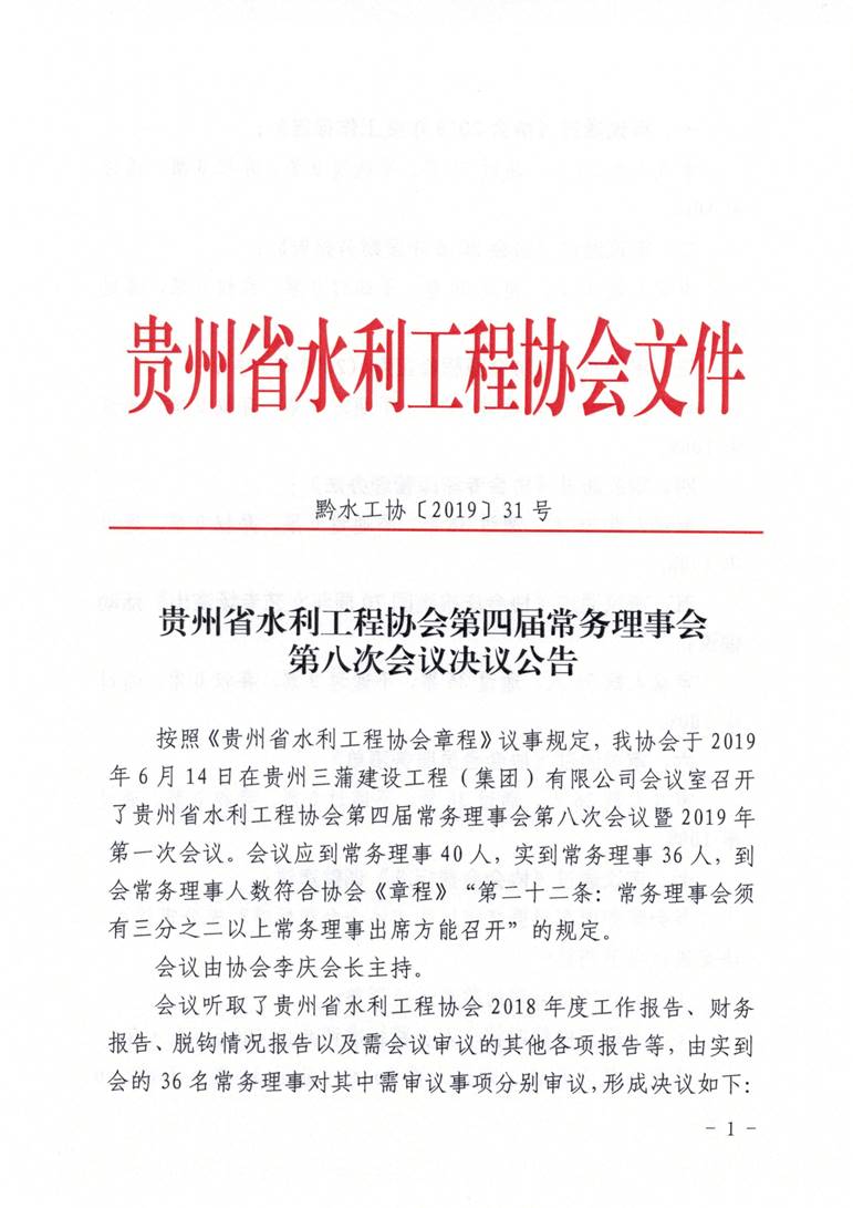 貴州省水利工程協(xié)會第四屆常務(wù)理事會第八次會議決議公告