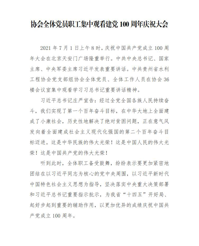 協(xié)會全體黨員職工集中觀看建黨100周年慶祝大會