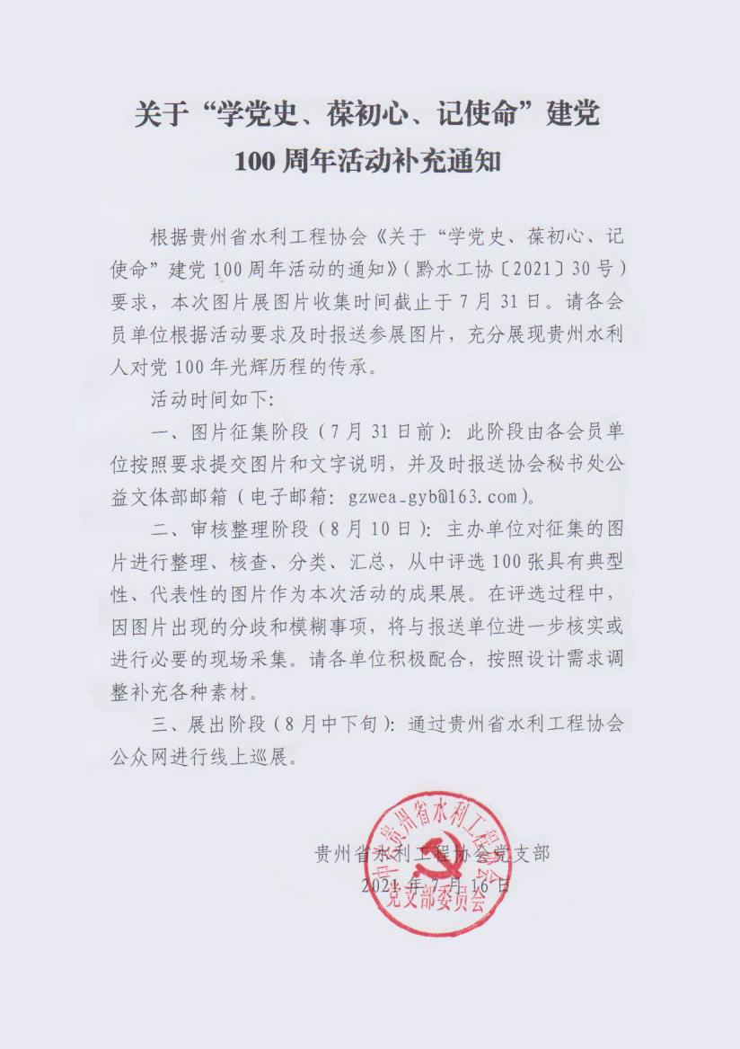 關(guān)于“學(xué)黨史、葆初心、記使命”建黨100周年活動補充通知