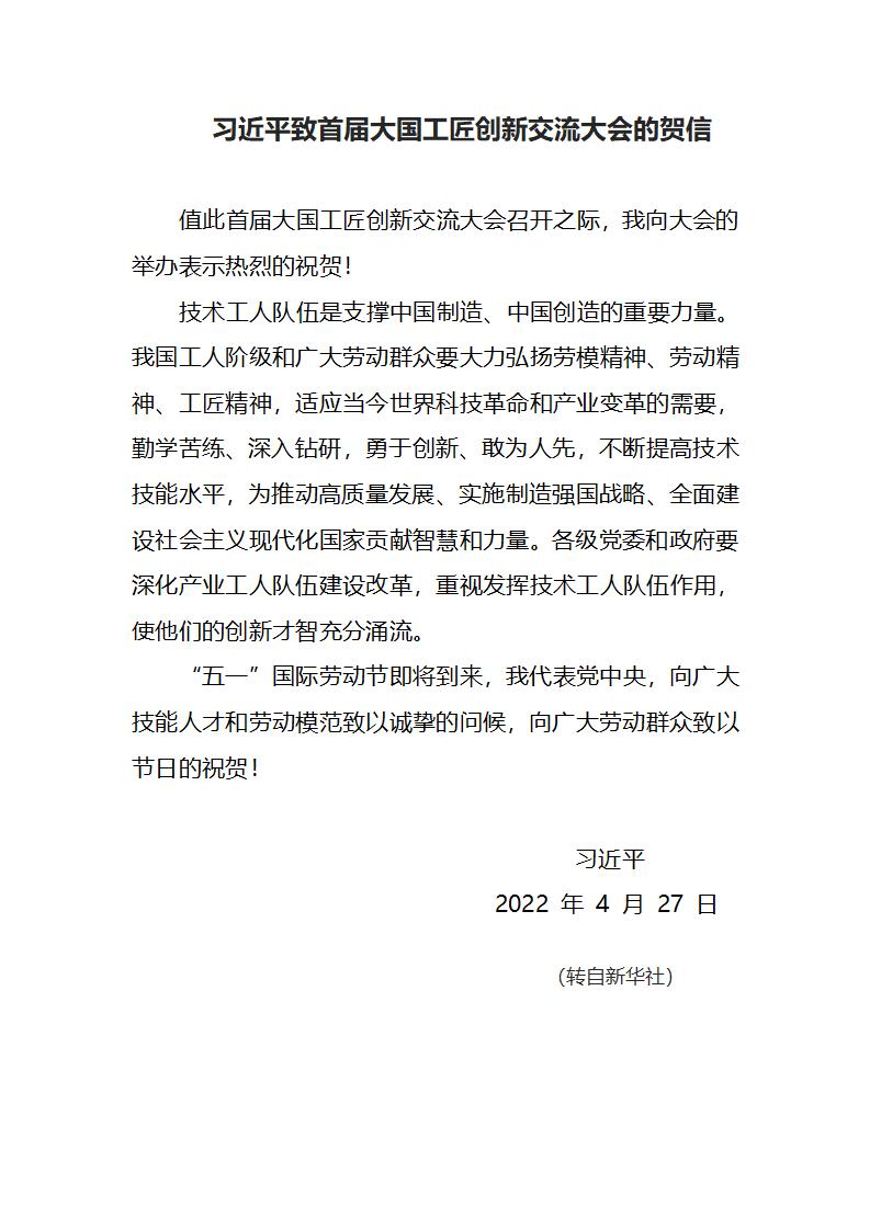 習(xí)近平致首屆大國(guó)工匠創(chuàng)新交流大會(huì)的賀信