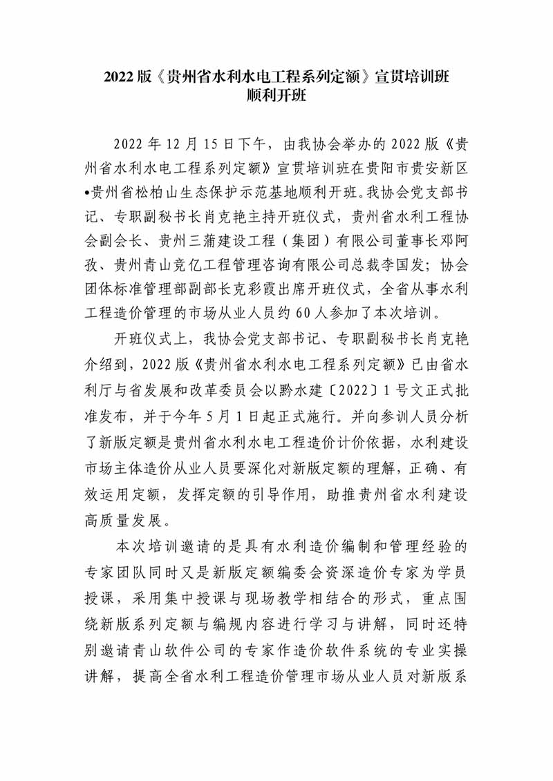 簡訊:2022版《貴州省水利水電工程系列定額》宣貫培訓(xùn)班順利開班