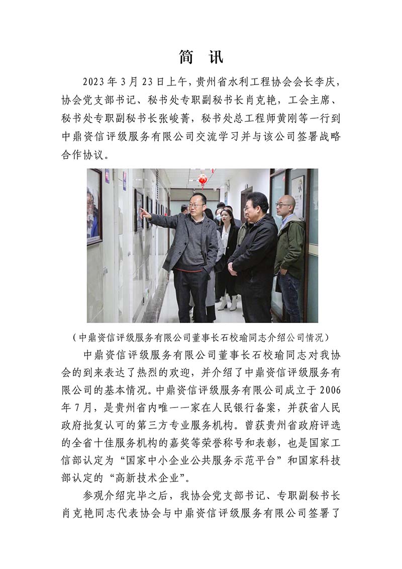 簡(jiǎn)訊:協(xié)會(huì)到中鼎資信評(píng)級(jí)服務(wù)有限公司交流學(xué)習(xí)并與該公司簽署戰(zhàn)略合作協(xié)議