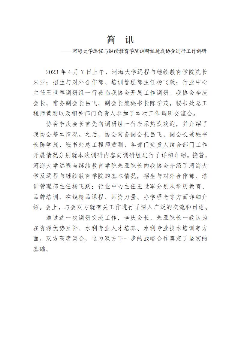 簡(jiǎn)訊:河海大學(xué)遠(yuǎn)程與繼續(xù)教育學(xué)院調(diào)研組赴我協(xié)會(huì)進(jìn)行工作調(diào)研