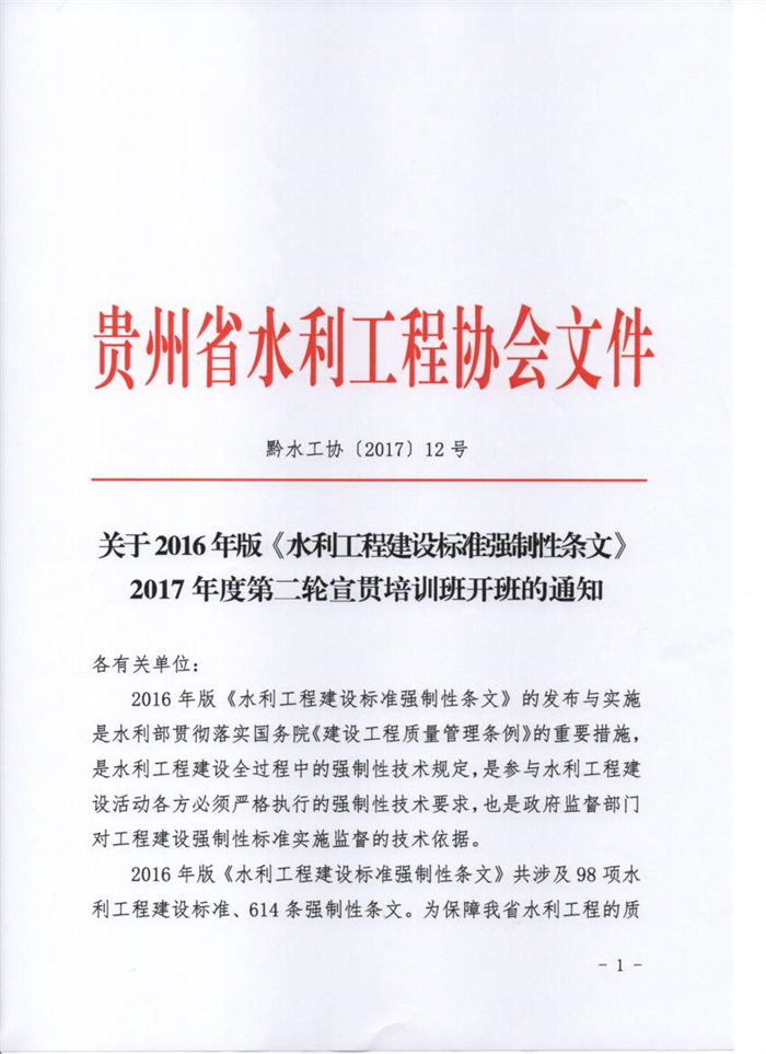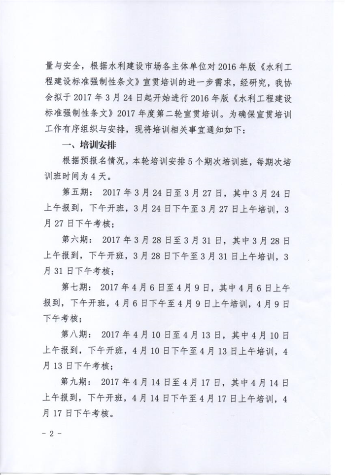 關(guān)于2016年版《水利工程建設(shè)標(biāo)準(zhǔn)強(qiáng)制性條文》2017年度第二輪宣貫培訓(xùn)班開班的通知
