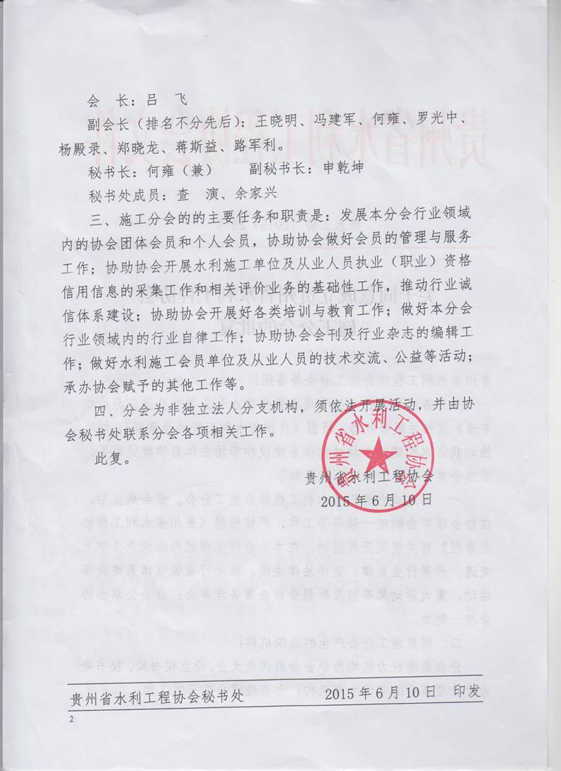 關(guān)于同意成立貴州省水利工程協(xié)會(huì)施工分會(huì)的批復(fù)