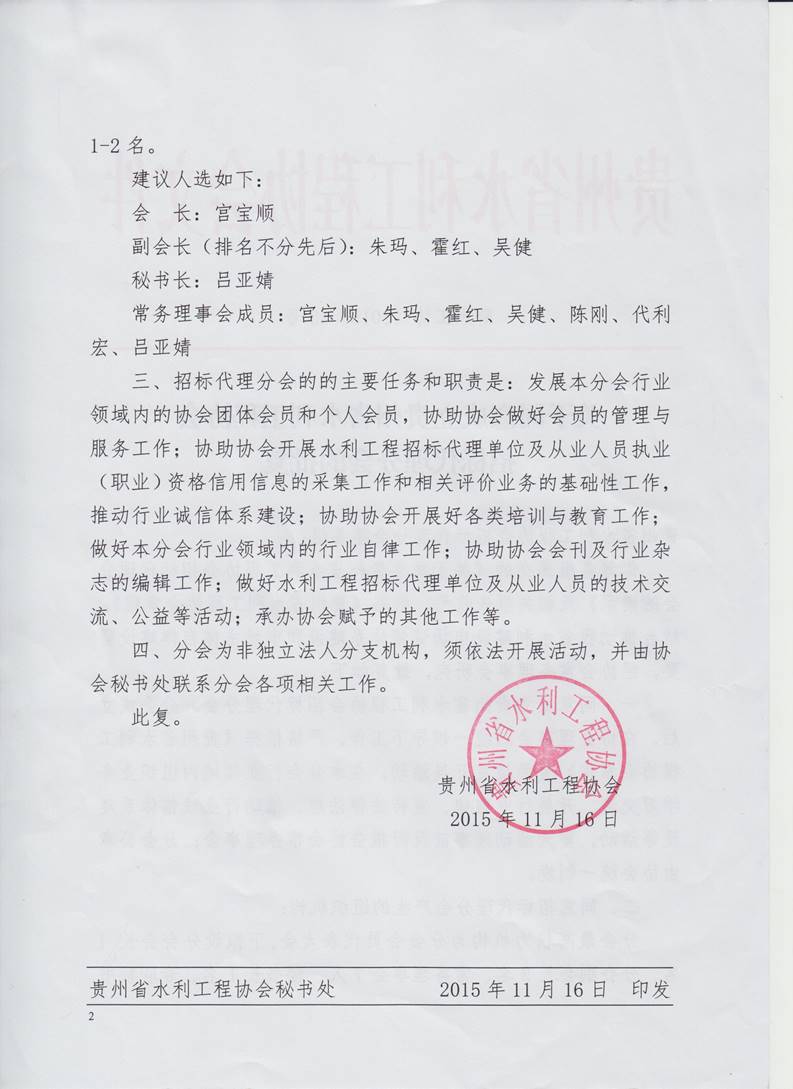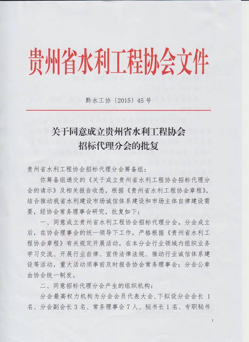 關(guān)于同意成立貴州省水利工程協(xié)會(huì)招標(biāo)代理分會(huì)的批復(fù)